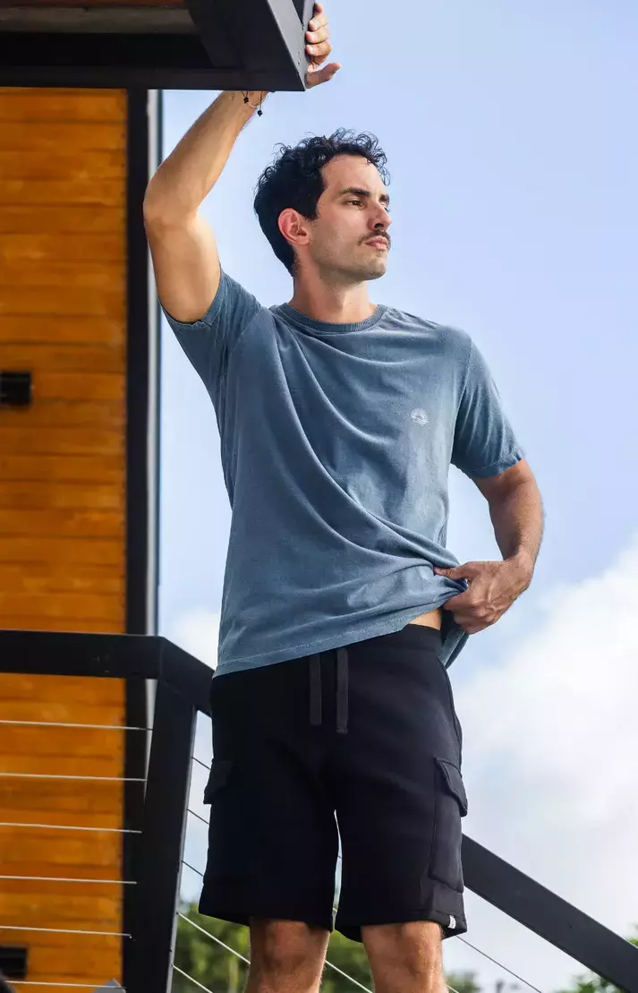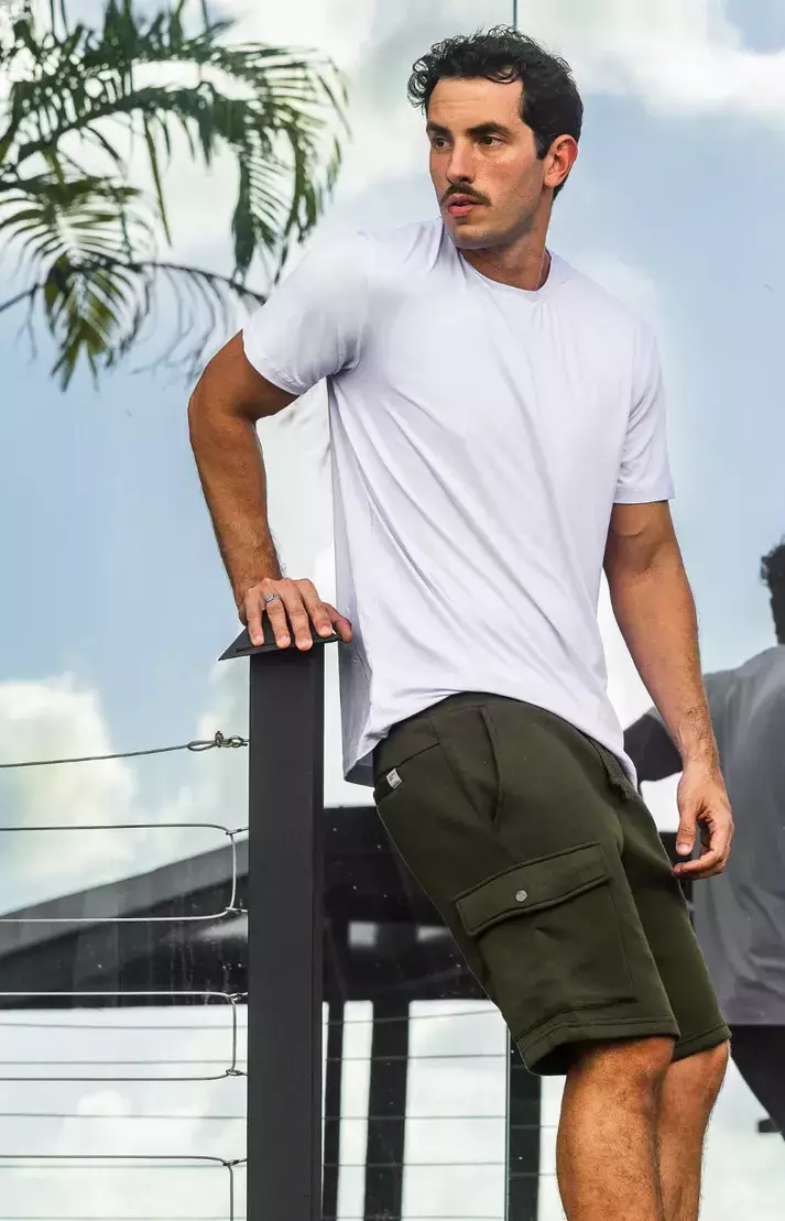 SOBRE A PEÇA Conforto, funcionalidade e estilo definem a Bermuda Moletom Neblina. Produzida em uma malha nobre de viscose e poliamida, oferece toque ultra macio e frescor, mesmo com sua gramatura mais estruturada. O corte é levemente alongado, porém ainda acima do joelho, e conta com dois bolsos laterais estilo cargo. Os bolsos traseiros são opcionais — basta remover o ponto de costura para utilizá-los. Um essencial moderno para quem busca praticidade com sofisticação.
