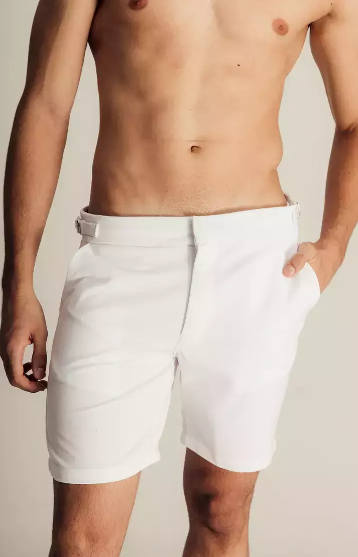 A Bermuda Taylor une o charme da alfaiataria ao conforto de tecidos inteligentes. Produzida com 70% viscose, 26% poliéster e 4% elastano, ela tem toque macio, caimento leve e elasticidade na medida certa. O cós estruturado, os bolsos embutidos e o acabamento primoroso elevam o visual, tornando essa bermuda uma peça essencial para o homem moderno.