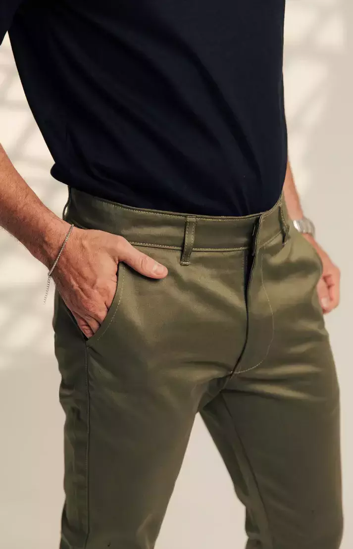 A Calça Vittorio é confeccionada 100% em sarja de algodão acetinada, um tecido premium que se destaca pelo leve brilho e toque macio. Seu acabamento refinado proporciona uma aparência sofisticada e exclusiva, enquanto a modelagem slim garante caimento impecável. É uma peça versátil, com visual limpo e contemporâneo, ideal para quem busca elegância sem abrir mão do conforto.