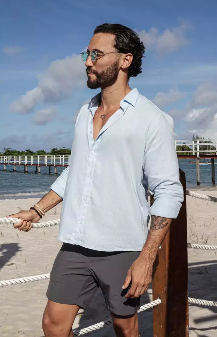 A Camisa Manga Longa Tulum é sinônimo de sofisticação natural. Feita com 55% linho e 45% viscose, ela proporciona frescor e respirabilidade com um visual elegante e descomplicado. Com modelagem regular e acabamento impecável, é a peça ideal para quem busca estilo mesmo nos dias mais quentes. Os botões discretos e o caimento leve fazem desta camisa uma escolha versátil, atemporal e cheia de personalidade.